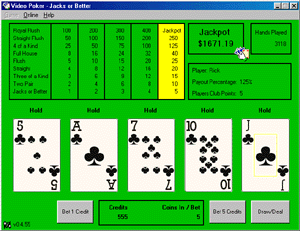 You win with a pair of jacks or any better poker hand. Bet 5 credits to play for the progressive virtual jackpot! |
