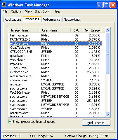 Click the Processes tab to display a list of the programs currently running on your computer.