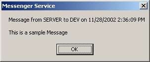 Although this service has no useful value for users of stand alone computers connected to the Internet, the service is left installed and running unless you disable it yourself. Anyone connected to the Internet that wants to make a message pop up on your screen can use your IP (Internet Protocol) address to send a message to you. The message will appear similar to the screen shot above, their computer's name will appear after 'from' and your IP address will appear after 'to', the following line(s) will be their message.