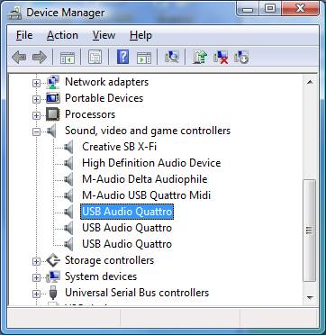 controllers, the Quattro should show up three times. as USB Audio Quattro, Right-Click on the first